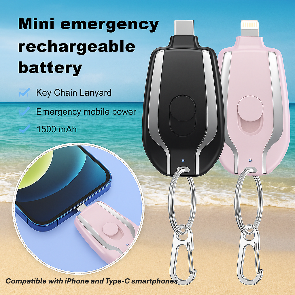 PowerKey™ Mini Emergency Keychain Power Bank – 1500mAh